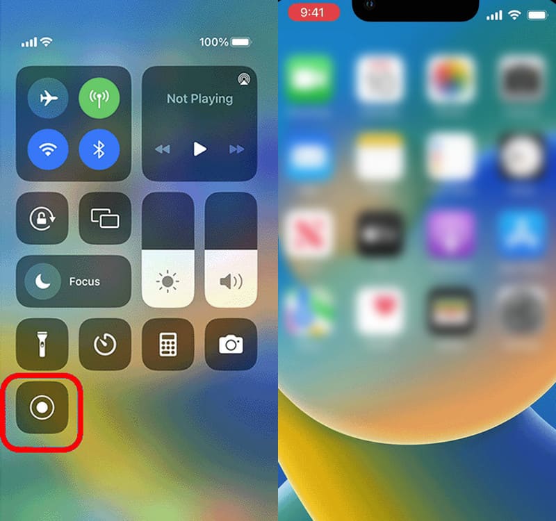 Swipe again to open the Control Center, tap the red Record button or the red status bar, and then tap Stop to stop recording. The recorded file will be saved in the iPhone gallery.