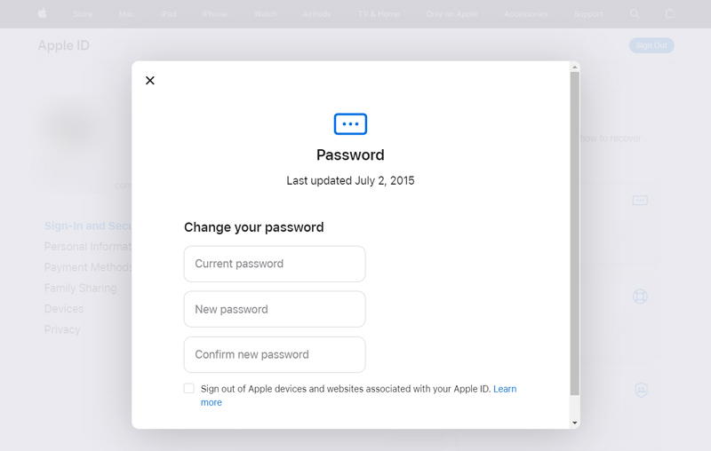 Go to the Apple ID website on your Mac, Windows PC, or mobile phone. Click the Sign In button and log into your Apple account with your Apple ID and password. Please enter the verification code to continue. When you reach the Sign-In and Security section, click Password to change your Apple ID password. You are required to enter both the current password and the new one.